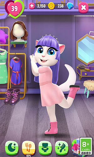 我的安吉拉2最新破解版2023相比前作与汤姆猫系列,本作采用安吉拉作为游戏主角,玩家在游戏内需要帮助这只时尚的小猫在位于大城市的家中忙个不停,比如为角色更换发型、为其化妆等等,而除了这些个性化装扮玩法,玩家还可以安排自己的小猫进行舞蹈、烘焙、武术等等活动,带来更多趣味玩法。玩家可以将安吉拉打扮成各种风格的造型,从头发到服装,选择性非常多。除了公寓内不同房间,游戏还提供了户外场景,例如:购物、唱K等,玩家将能体验到千姿百态的安吉拉。