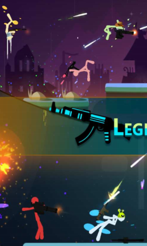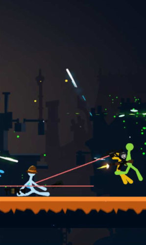 2、4名火柴人同时战斗,相互射击,武器会随掉落,包含了狙击枪、喷火器、冲锋枪等多种武器。