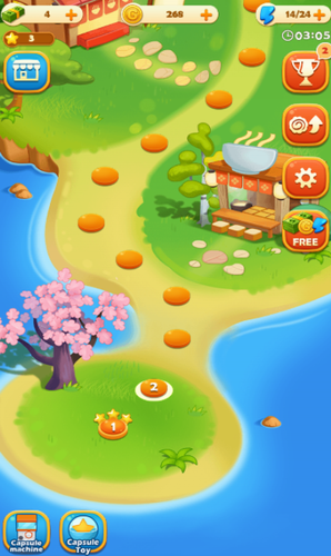 游戏中的关卡有星数设定 最高三星 星星能够用来强化配料 使金币的收益增加。