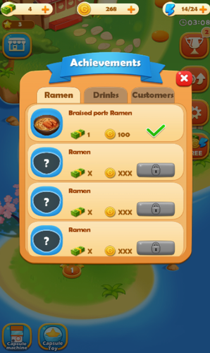 3、另外在关卡与成就中也能赚取金币与钞票 这些资源可以增强厨房 提升料理价格。