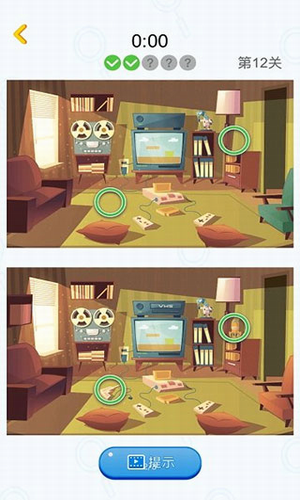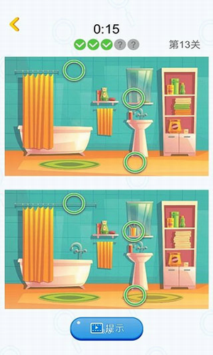 3、如果不明显的,可以点击屏幕中的提示按钮,然后根据提示再找不同。