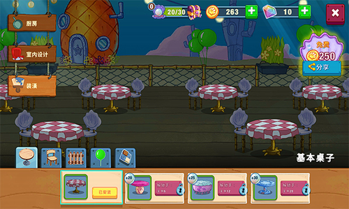 1、妙趣横生的海底世界,和海绵宝贝一同在这个游戏中经营美食。