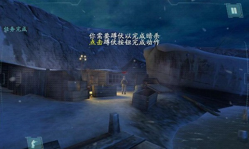 接下来是第一个任务:喜闻乐见的暗杀。在新手教程里可以看到,游戏依然采用的是虚拟遥感的操作,其中包括自动瞄准,可以下蹲,奔跑并且包括用刀刺杀。玩 家要通过不断的Cover然后从背后干翻他。游戏的枪械建模感觉一般般,没有太好的真实感,不过游戏的自动瞄准系统意外的准啊,打击感也是继承了使命召唤 的一贯传统。这里,我们可以通过名字选择要操纵的队员,同时控制整个小队进行突击。游戏支持第一人称视角和第三人称视角的切换,在上帝视角下可以操纵小队 同时击杀。