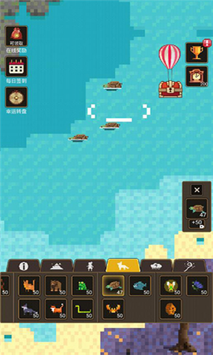 2、发挥自己的想象控制各种角色、动物、植物、地形外貌、海洋等等,打造一个由玩家定义世界。