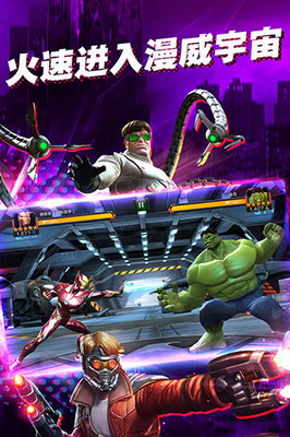 漫威超级争霸战破解版无限星币版是一款非常热血好玩的动作格斗类手机游戏,游戏以《复仇者联盟》为题材改编而成,采用了先进的3D引擎技术打造,背景根据著名的漫威电影而展开,完美复刻了电影中的角色和剧情,所有我们耳熟能详的超级英雄和超级反派都将出现在此,玩家可以自由选择角色,在浩瀚的宇宙中上演一场史诗般对决。在这个全新的漫威游戏世界中,玩家们所熟悉的蜘蛛侠、钢铁侠、美国队长、死侍、万磁王、幻世、浩克和金刚狼等超级英雄一一登场,玩家可以通过战斗收集这些超级英雄们并组建自己的英雄队伍,也可以和好友们组团,一起在这个漫威联盟世界中展开最终的角逐;此外,游戏除了动作、竞技的玩法之外,游戏还有各种探险、收集、升级和刷副本等有趣的玩法可以体验。