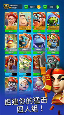粉碎四人组安卓最新版是一款非常好玩有趣的休闲益智类战斗手游,英文名称叫做Smashing Four,该游戏包含了丰富的内容和各种有趣的玩法,致力于带给广大玩家们全新的休闲战斗体验。游戏拥有大量的人物等你选择,每个人物都拥有自己独特的属性技能,玩家可以自由的搭配各种角色,通过随机匹配玩家进行战斗,只有合理搭配角色才能更好的获得胜利,而在你赢得胜利后就能获得大量的金币,同时,在你游戏的过程中还能够收集卡牌以解锁新的人物,升级人物即可释放他们的强大能力,在竞技场上粉碎您的对手,并一路晋级到最高位,证明自己的价值,并获得特别奖励。由于粉碎四人组是回合制游戏,攻击顺序是根据玩家安排人物上场的顺序定的,这也让你不论啥时候都能出来畅玩一下,对于无聊的大家来说还不快来下载体验。