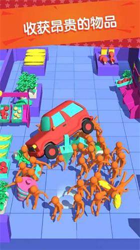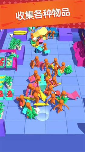 1、游戏的玩法很简单,你需要控制着人群不断的移动,收获更多的商品。