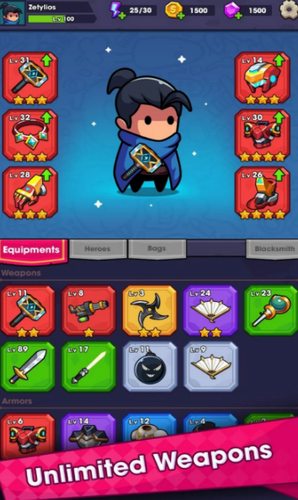4、个英雄都有不同的人物属性,在给英雄配置武器和装备时,要根据加成数值综合考量。
