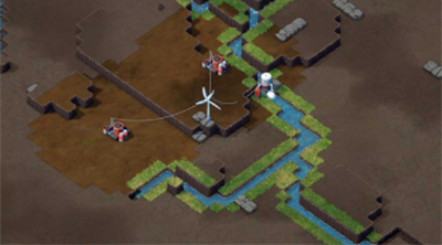 10、在玩家开拓了不少土地后,玩家就能解锁建筑水泵,水泵必须要建设在有绿色资源覆盖的沟渠边上,这样才能把水引进河道;