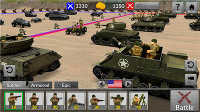 3、玩家应根据自己的金币合理安排兵力。每个士兵、大炮、枪械等装备都有相应的价格。玩家应该根据价格进行战略战斗。
