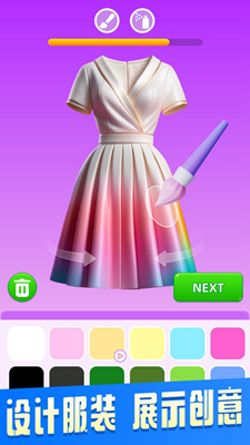 1、根据订单指示,设计并裁剪服装,点击并按住。每个关卡的订单需求都是不一样的,玩家可根据具体要求来选择合适的工具进行翻新或重新设计。