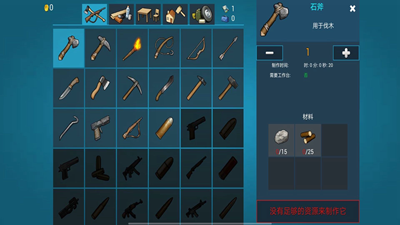 4、除了收集资源之外,大家还需要利用收集的材料去制造各种工具,这些工具可以帮助你更好的生存。