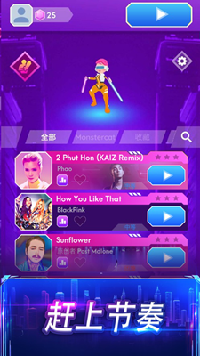 4.完成关卡挑战任务,并解锁世界上最热门,最具活力的音乐单曲。