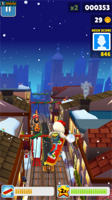 双击屏幕可启动滑板道具,如果在没有启动滑板功能的情况下,角色撞上障碍物或者火车游戏就会结束,而在滑板状态下,等于给角色买了保险,滑板会在撞到障碍物时消失,但游戏可以继续进行。滑板在消失后的几秒内出现冷却时间,当闪烁结束后可通过双击再次启动,没有次数的限制。