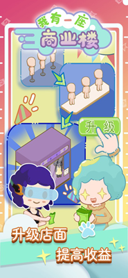 1、经典有趣的模拟商业游戏,通过装修、运营等方式获得商业楼宇,吸引商户入驻,增加流量。