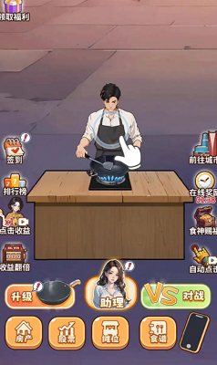2、点击界面上方的食神图标,立刻获得金币,能力提升后金币奖励更大。
