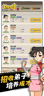 一代功夫大师破解版内置菜单版是一款超有趣的休闲模拟经营类型手游,玩家将扮演一名功夫已经练到登峰造极得功夫大师,青年校长,来经营一所武术学校,在这个卡通世界里,你可以召唤各种强大的侠客与自己并肩作战,加入了很多轻松有趣的挑战玩法,完成一系列的冒险挑战任务,能够让角色的作战实力变得更加强大,各种各样的对手都需要你的打败,每个对手用的招式都不一样,如果大家喜欢,欢迎随时来下载体验哟!