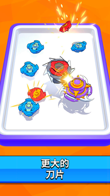 相同的陀螺可以合并升级,还有刀片等各种小部件可以用来提升陀螺的威力。