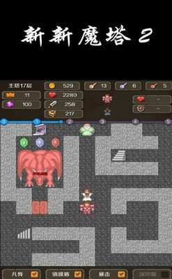 新新魔塔2破解版是一款人气超高的经典冒险手游,在魔塔背景下,玩家将开始一段神奇冒险的旅程,游戏以怀旧的画面风格和简单的操作使你在玩游戏的时候不禁陷入了它的世界,玩家需要运用各种战术和策略消灭妖怪、打开藏在深处的宝箱、收集关键道具,并且不断的向上攀登高塔,最终解锁新地带,每层怪物,陷阱和难题各不相同,需要玩家变换灵活的应对方式,并从中解出谜团。在游戏中玩家将扮演一名地牢探险者,在地牢中勇敢的进行探索冒险,击败每一层地牢中的怪物,获得更多的奖励来升级自己的角色经验以及装备,在后续的冒险之路中能够发挥自己最大的力量。对冒险类手游感兴趣的玩家快来下载试试吧!
