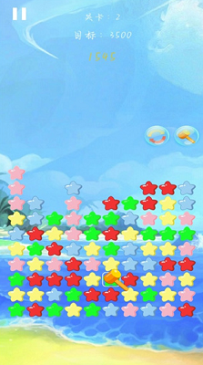 5、在游戏的主界面,玩家可以通过点击任意两个或更多颜色相同的相邻星星来实现消除。