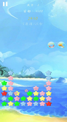 2、当您点击两个或两个以上颜色相同的星星时,它们将被消除并为您带来得分。