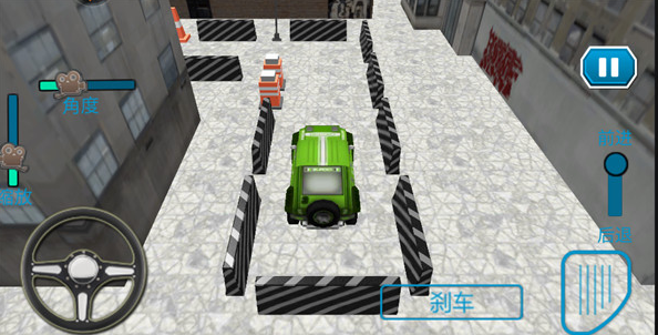 4、游戏的构造与真实汽车非常相似,玩家可以通过方向盘来控制车子方向,刹车控制车子停下,而且还可以通过视角来调节仰视和俯视的整体游戏视角。
