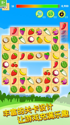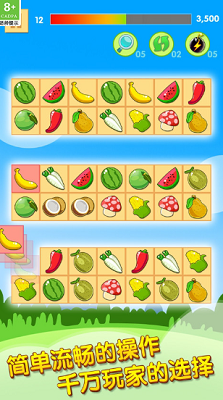 2、经典模式,连连看经典的玩法,规定时间内消除所有水果就算过关。