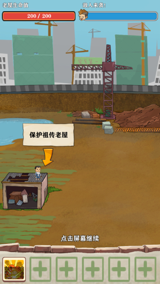 1、打开王小屋的屋屋保卫战最新版,进入游戏后玩家需要保护祖传老屋;