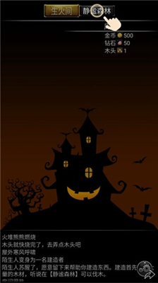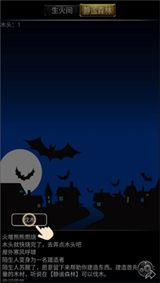2、随着游戏中黑屋微光方显,遮蔽在宏大世界上的幕布的一角慢慢揭起,你需要不断的生火、进行添柴。
