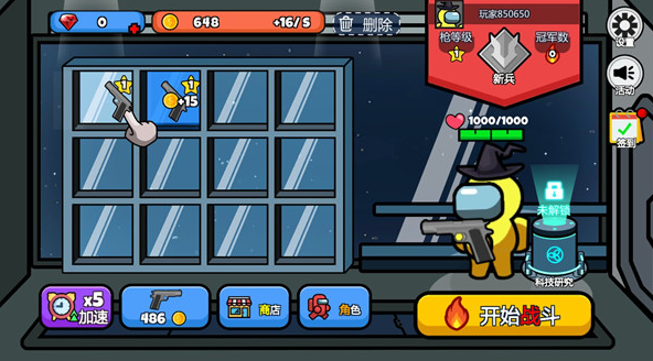 1、下载进入太空大逃杀游戏,通过购买武器来提升你的战斗能力;
