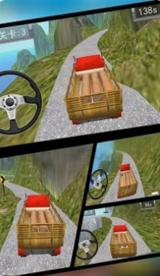 2、卡车行驶在泥泞坑洼的道路上是,玩家需要控制好自己的方向盘,防止掉落进大坑之中。