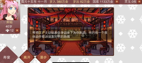 流程参考大家的第一个老婆崔颖,宫内会发生各种各样的残酷宫斗事件,比宫外的死亡率高很多,而且后宫哪有御书房的朝臣好玩(并不是)臣民未满18不可以宠幸,怀孕不可以宠幸