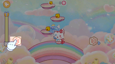 5、进入小游戏关卡后点击左右的按键进行跳跃获取铃铛。