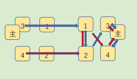 如上图所示:1、3号位和主角出手,进攻敌方单位顺序>1>2>3>主角>4;