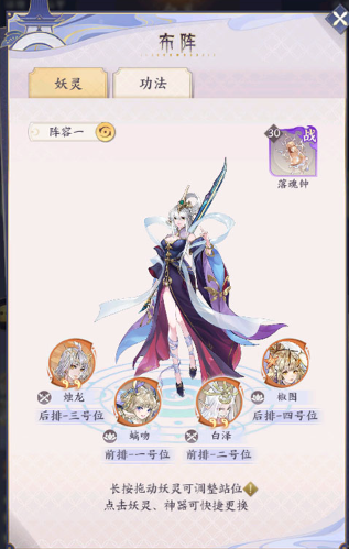 因此,一套标配阵容通常以防御妖灵放置1号位吸收伤害,2、3号位放置攻击妖灵抢先出手,4号位放置辅助妖灵治疗/解除其他妖灵异常状态。实际副本或pvp对战可根据敌方阵容灵活配置调整。