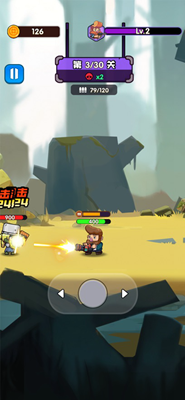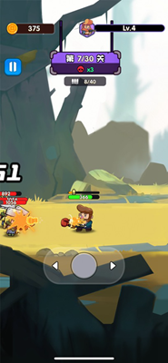 2.在游戏中使用一根手指用虚拟操纵杆控制,攻击方式为自动瞄准和射击。