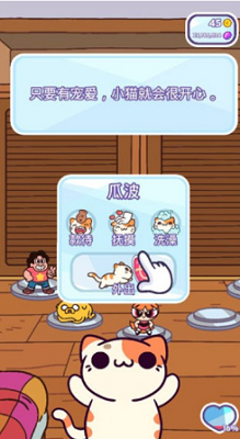 2、当小猫回家的时候玩家们可以摸一摸小猫,小猫就会更高兴,而且在小猫高兴的时候,就可以获得爱心。
