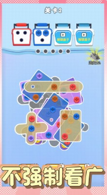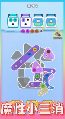 2、这款游戏的主要玩法是通过拔出对应颜色的螺丝来完成相应的消除任务。