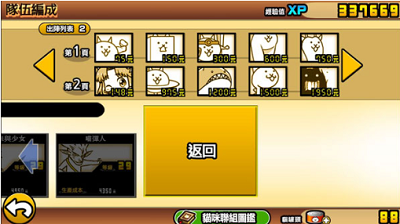 算是在游戏中后期最常见的打法了,基本就是疯狂出炮灰+补输出猫。重点就是输出猫的选择,{配置方法:3~4炮灰,1~2控制,1~2一般型输出,1~2爆发。这是一般的打法,可以根据关卡的不同来配,炮灰是重点,其他可以变}
