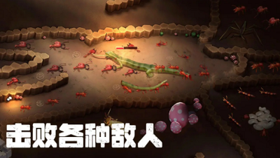 1、很多的昆虫将会成为蚂蚁的敌人,玩家们可以去派出强大的兵蚁来去对昆虫发起进攻,击败它们还可以去充当食物。