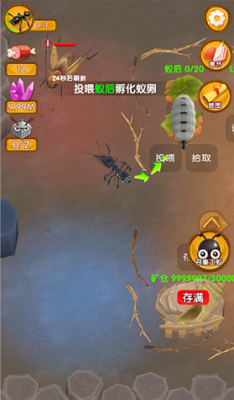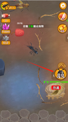 3、搬运好食物后,玩家需要把食物投喂给蚁后孵化蚁卵;