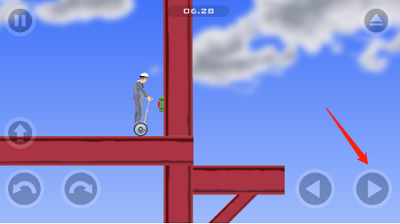 3、屏幕中总共有五个操作按钮,左下角的三个按钮分别是跳跃、左倾和右倾,利用左边的按钮可以调节平衡,屏幕右下角则是前进和后退。