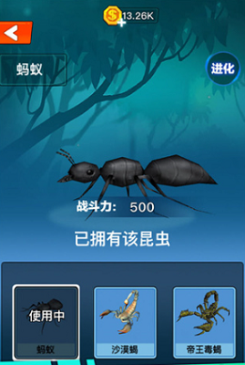 3、昆虫进化:不同种类的昆虫在进化后拥有不同的技能,玩家可以通过进化来增强自己的实力,享受更加刺激的游戏体验。每个昆虫都有独特的技能,让玩家能够体验到不同的爽感。