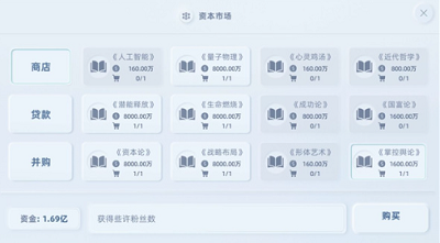 市场、情报、战略:情报收1000w,市场需买的书如下图(形体艺术刷成就),货款选3亿刷成就,这3亿一般不用。并购不管。战略选择中端机高福利。