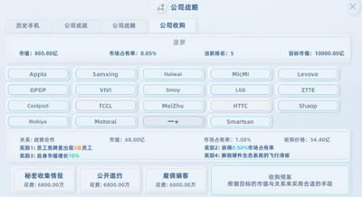 游戏中的电池、屏幕、材质、相机等均可不断升级,在你资金充裕时甚至可以启动CPU和操作系统的自研项目,你将有可能研发出性能逆天的芯片来大幅提升自己的手机品质。