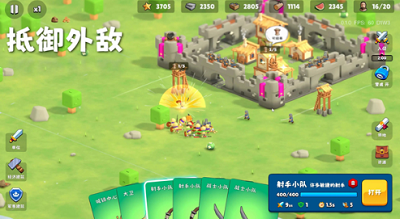 2、建筑防御:游戏结合了塔防机制,玩家必须建造城墙,招募士兵,抵御敌人一波又一波的入侵,保护家园。