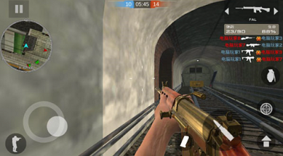 6、左侧遥感负责移动,右侧弹夹、射击、投掷手雷和更换武器中规中矩