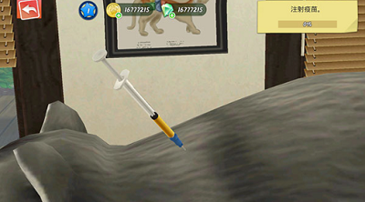 4、点击治疗方案后,就需要进行相应的治疗措施,现在将注射器拖动到动物患者身上。