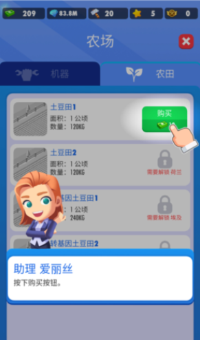 1、欢迎来到你的马铃薯工厂,在这里你将继承和经营你叔叔的马铃薯工厂。