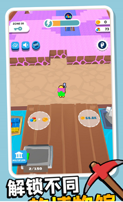 4、解锁不同的博物馆,放置稀有宝石和其他采矿获得的资源,解锁更多的博物馆,为您创造利润。